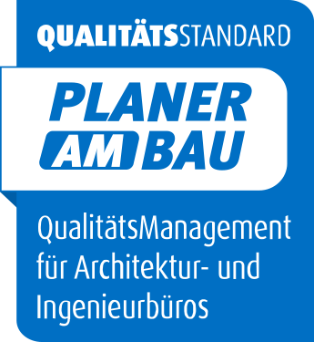 Unser Qualitätsmanagementsystem wurde 2021 entsprechend dem TÜV Rheinland Qualität-Standard "Planer am Bau" zertifiziert.